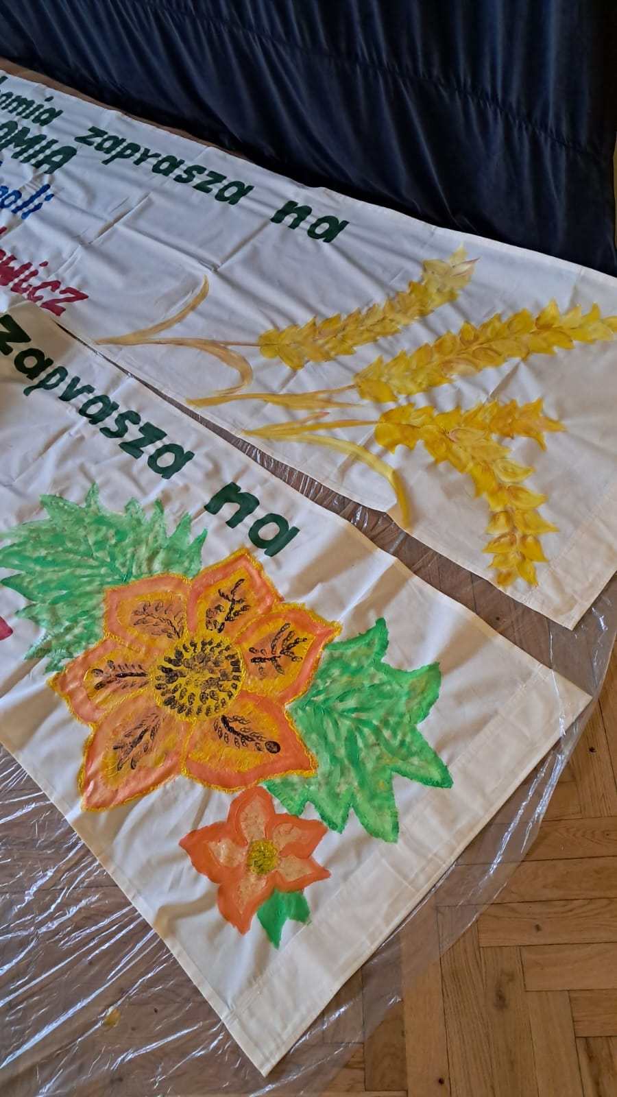 🌾Ekipa GOKSIR Lubomia szykuje się do zbliżających się Dożynek - piękne banery ręcznie malowane już prawie gotowe 🌾