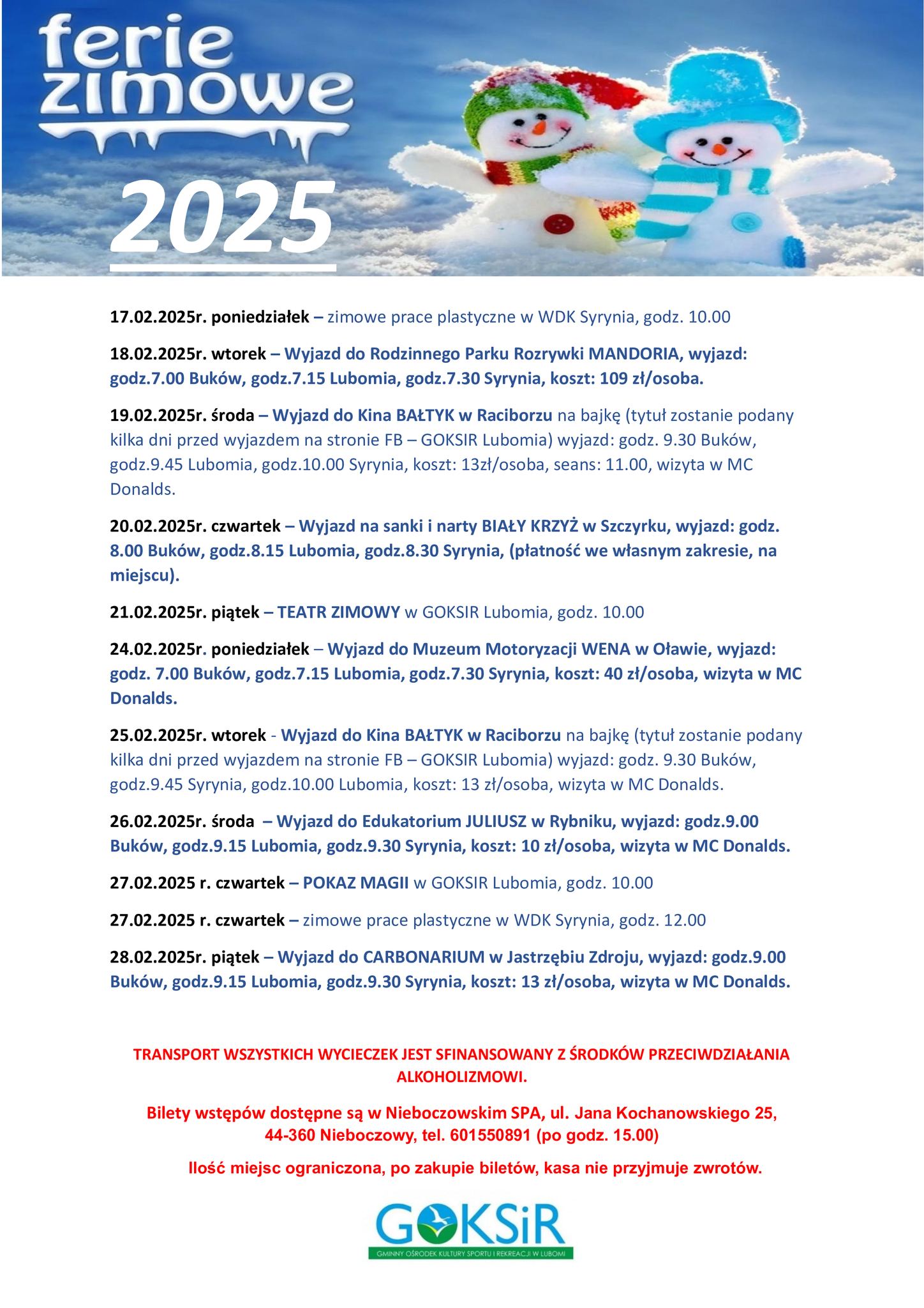 FERIE ZIMOWE Z GOKSiR