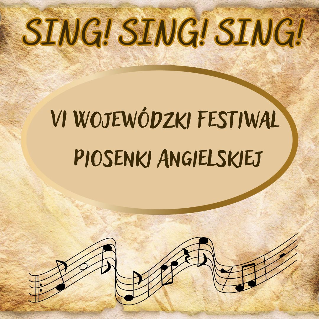 VI Wojewódzki Festiwal Piosenki Angielskiej 28.01.2025 Serdecznie zapraszamy na VI Wojewódzki Festiwal Piosenki Angielskiej SING! SING! SING!
