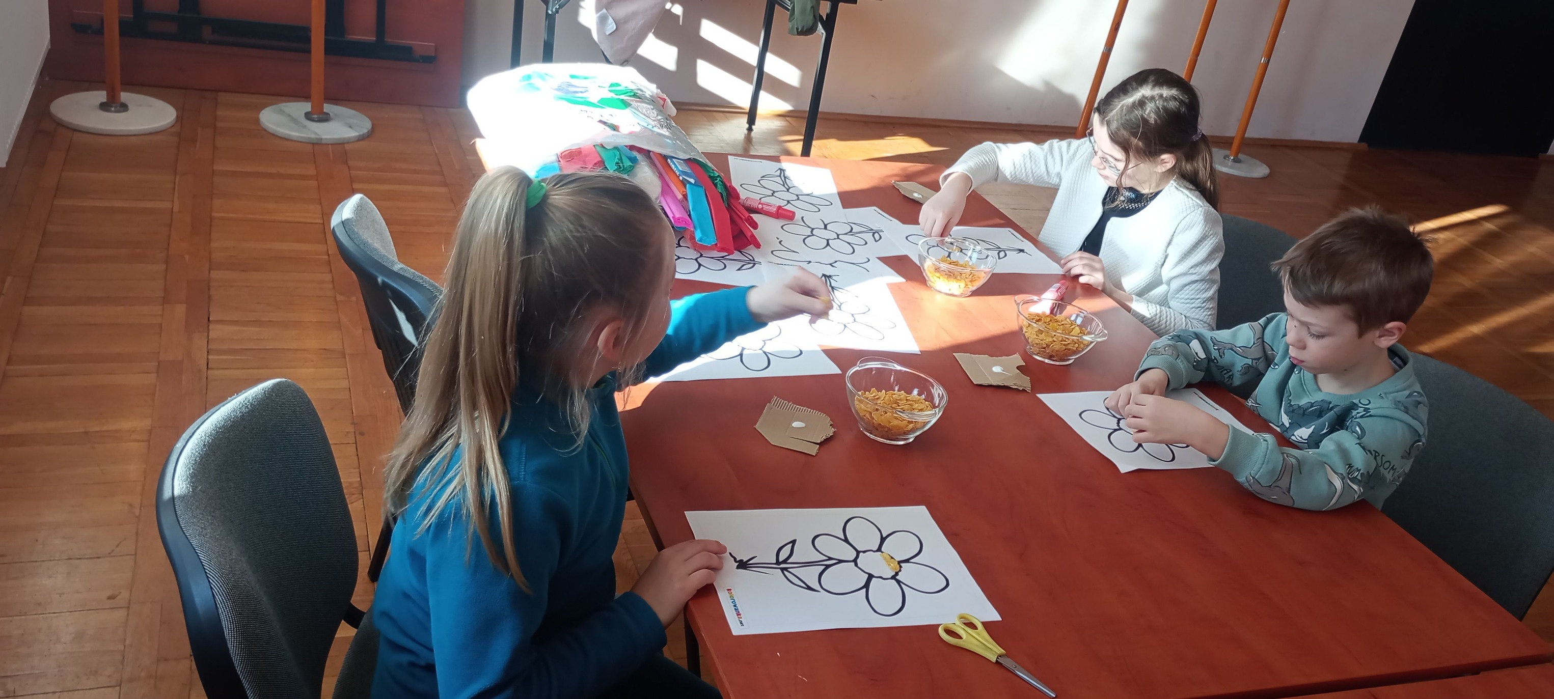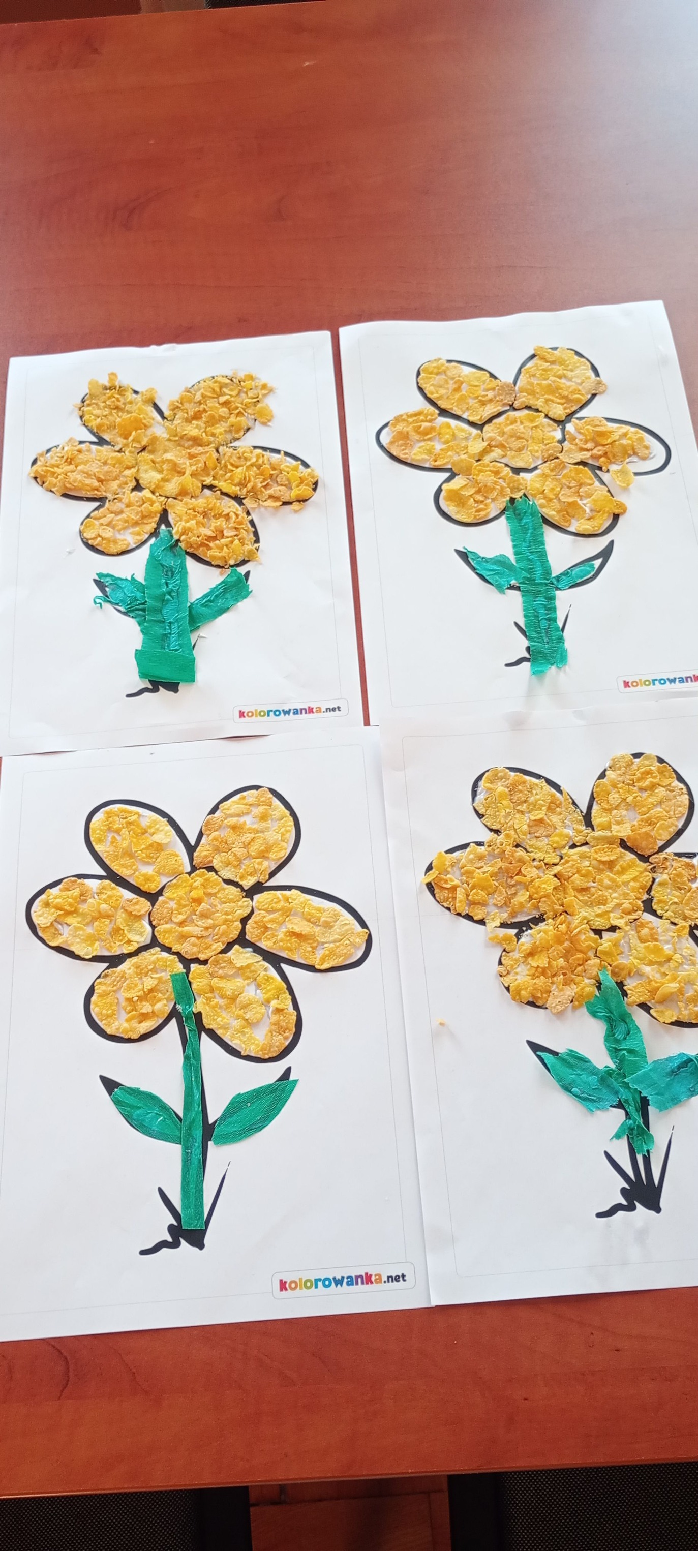 Maluchy stworzyły piękne kwiatki z płatków kukurydzianych i kolorowej bibuły, wykazując się ogromną pomysłowością i zaangażowaniem. 🌸🌾 Na zakończenie dnia przyszła chwila na małą ucztę – wszyscy mieli okazję spróbować pysznych, chrupiących płatków kukurydzianych! 🍽️ To był naprawdę wesoły i kreatywny dzień, pełen zabawy i smakołyków!