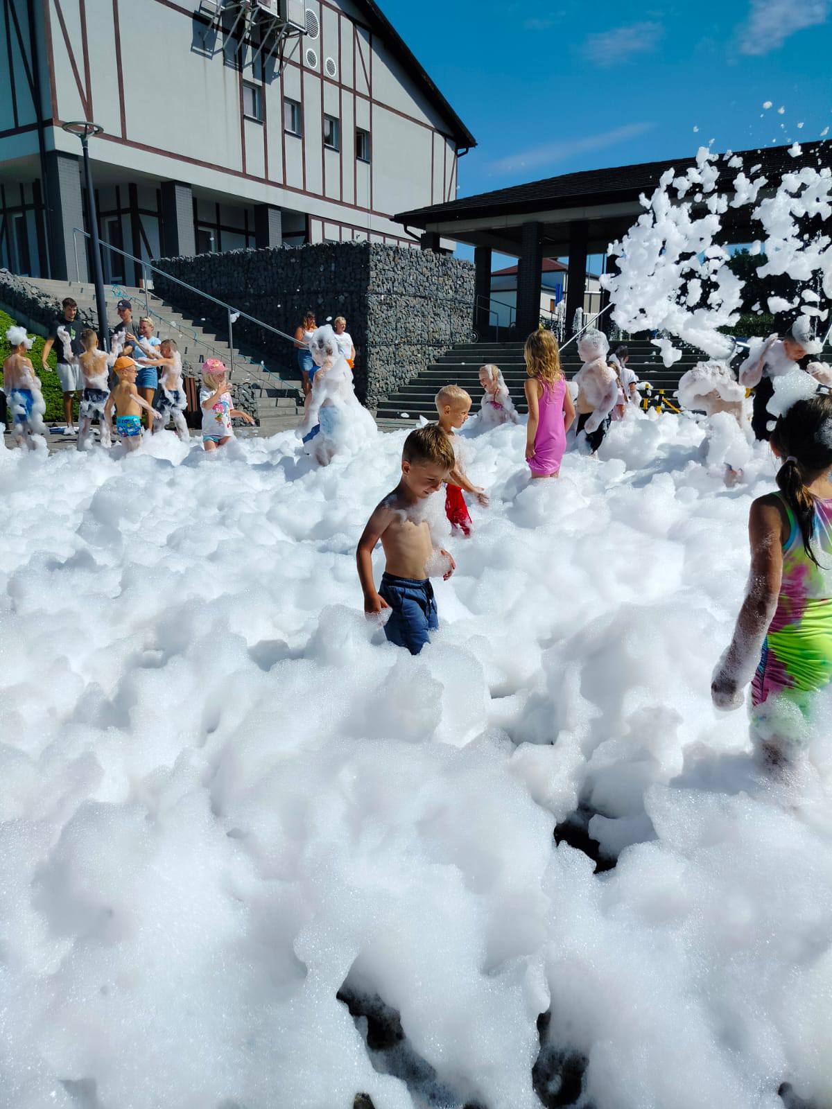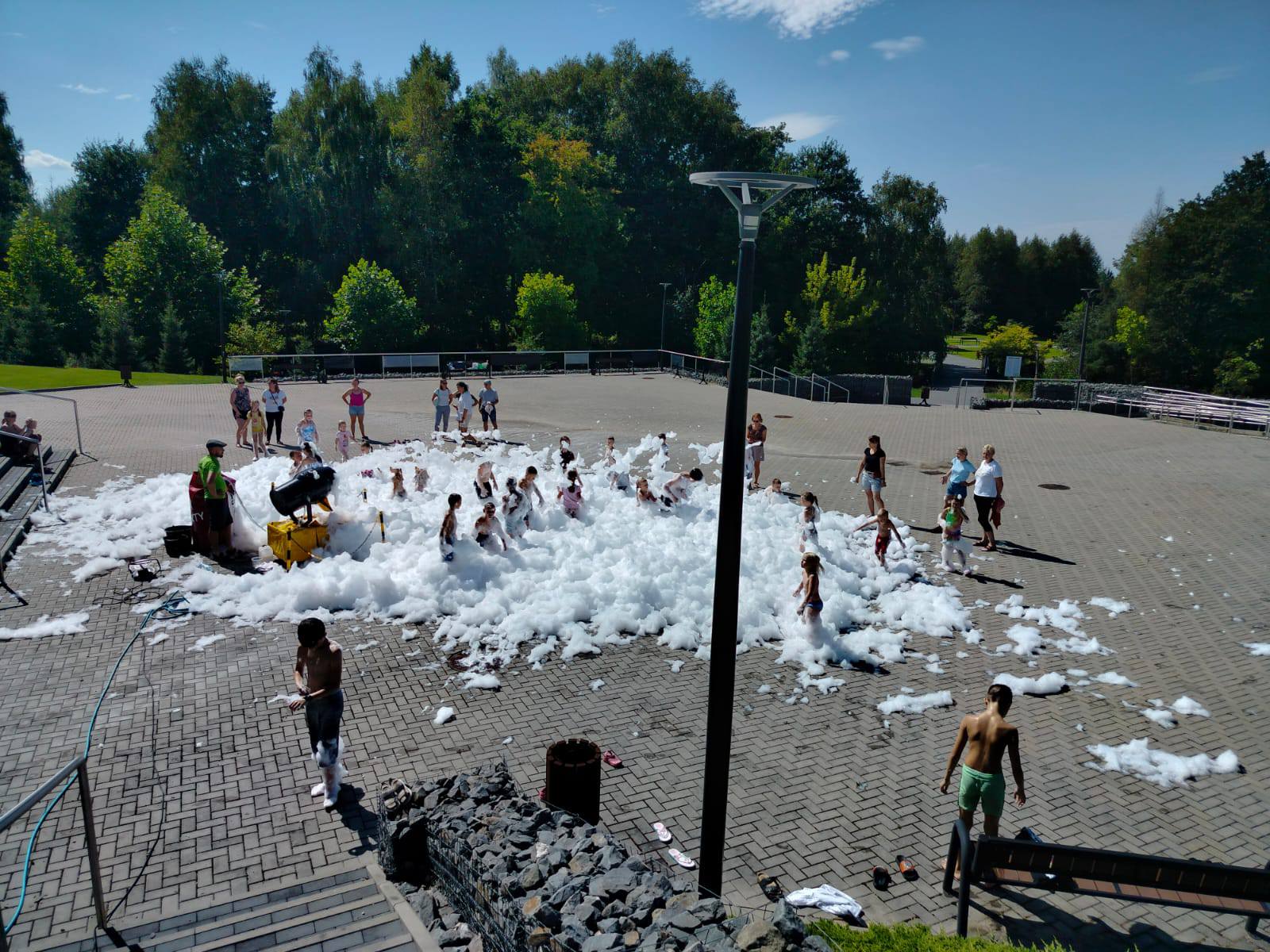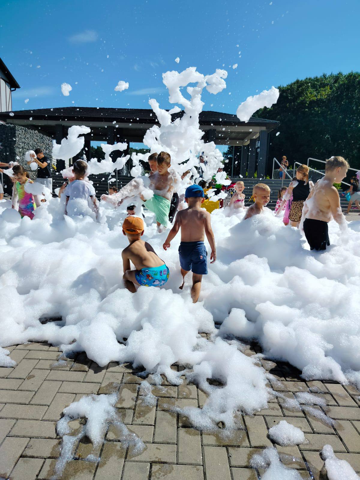 Ale to była zabawa! Teren Wiejskiego Domu Kultury w Nieboczowach zamienił się w prawdziwe pianowe szaleństwo! Dzieciaki miały okazję wyszaleć się w bezpiecznej, pachnącej pianie, a uśmiechy nie schodziły im z twarzy ani na chwilę.