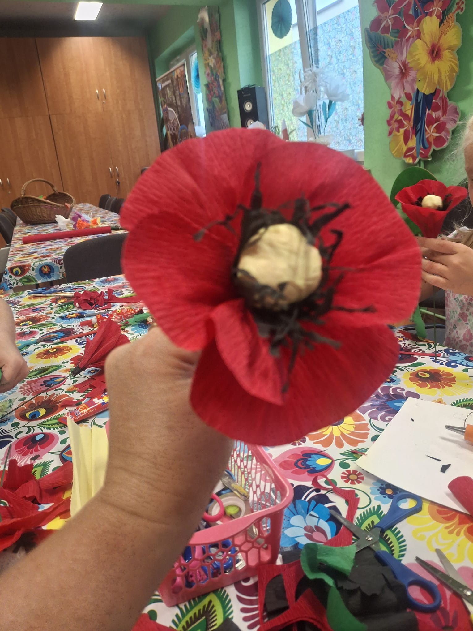 Dzieci z Lubomi spędziły twórczy czas na zajęciach plastycznych, podczas których powstały piękne czerwone maki – wykonane z papieru, z wielką starannością i wyobraźnią. 🌺