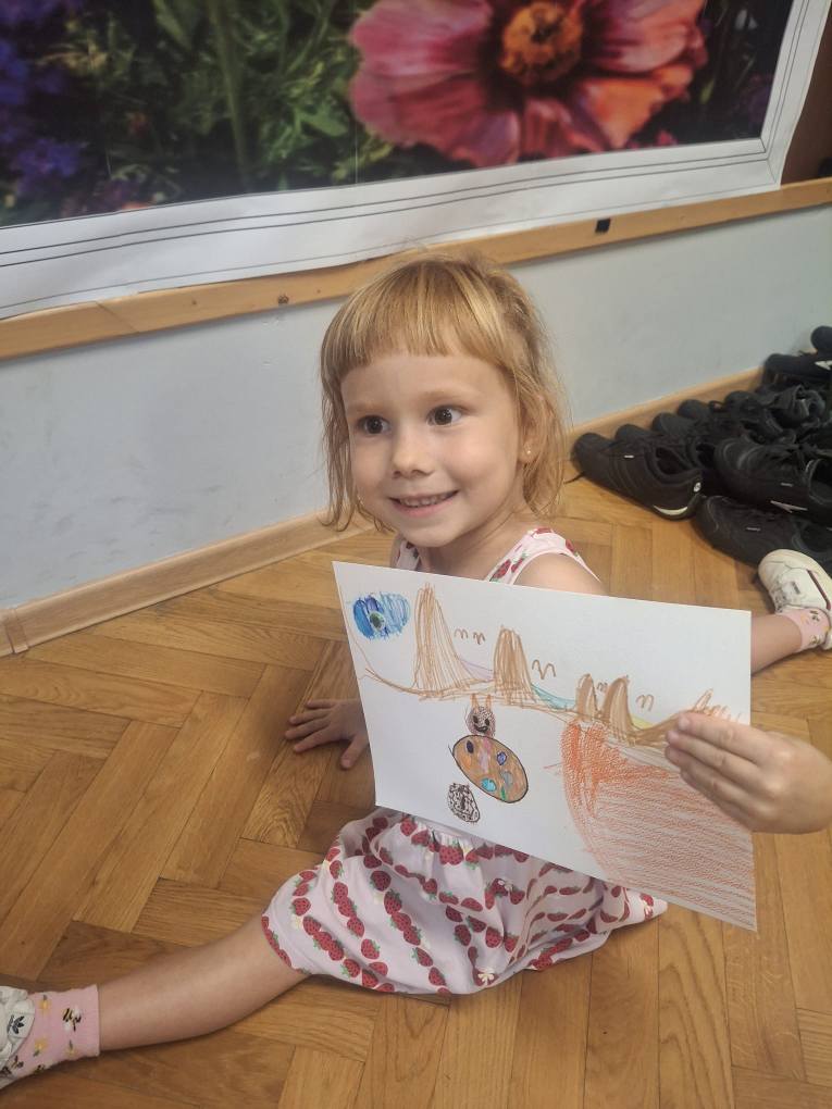 Nie zabrakło też odrobiny nostalgii – w drugiej części zajęć mali artyści przenieśli się wspomnieniami do wakacyjnych przygód, tworząc barwne rysunki pełne słońca, morza, gór i niezapomnianych chwil! 🏖️🌄✈️