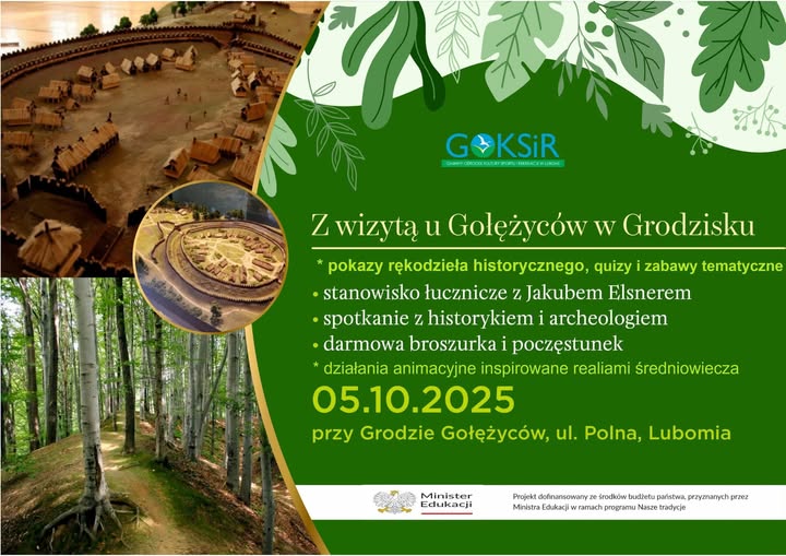 Gminny Ośrodek Kultury, Sportu i Rekreacji w Lubomi otrzymał dofinansowanie na realizację wyjątkowego wydarzenia kulturalnego – "Z WIZYTĄ U GOŁĘŻYCÓW W GRODZISKU" w ramach programu Ministra Edukacji "Nasze Tradycje"🎭✨