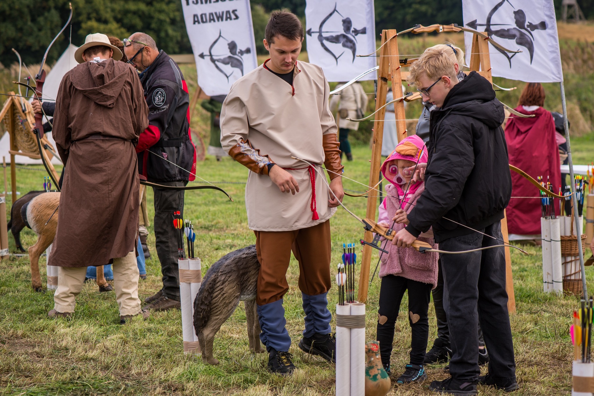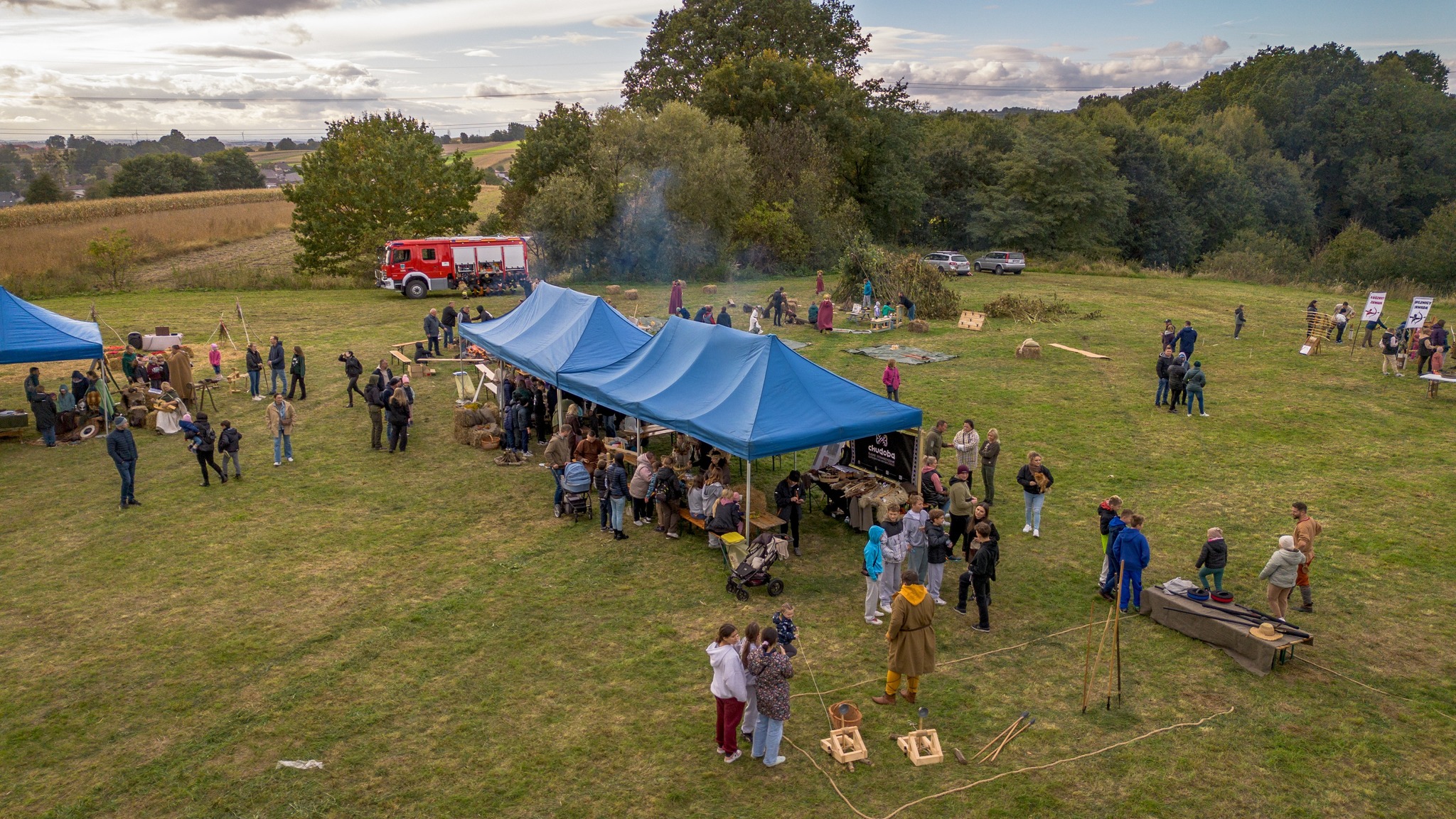 Nie zabrakło również smaków przeszłości – można było skosztować podpłomyków, kiełbasy z ogniska, wędzonych serów oraz napić się gorącej herbaty przy ognisku.