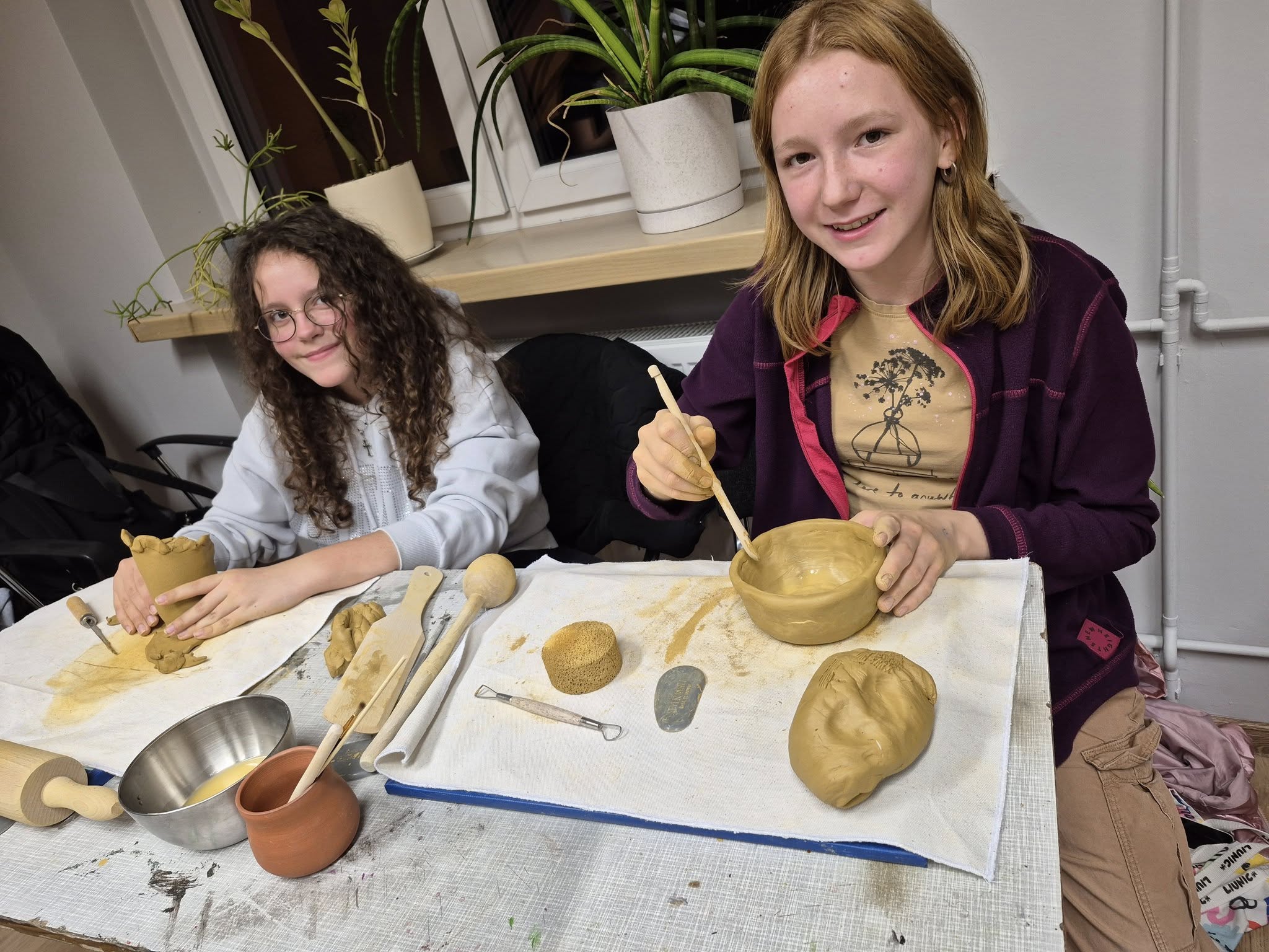 Dziś odbyły się następne zajęcia z lepienia z gliny – i jak zwykle było mnóstwo zabawy, śmiechu i… trochę brudu! 😄