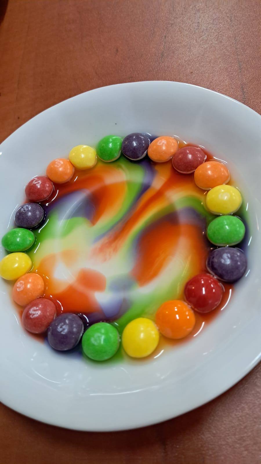 Dzieci obchodziły Dzień Skittlesów i z tej okazji przeprowadziłyśmy mały eksperyment. Z kolorowych cukierków powstały przepiękne, tęczowe wzory, które zachwyciły wszystkich małych odkrywców ✨