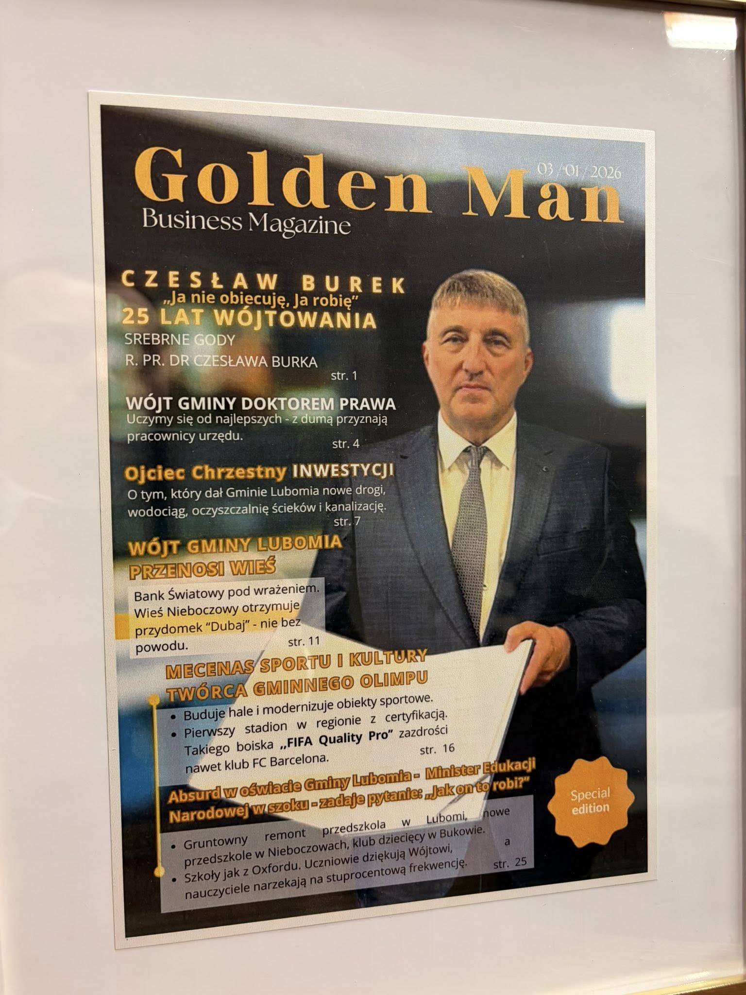Na ostatniej sesji Rady Gminy Lubomia Wójt odebrał list gratulacyjny z okazji 25 lat pełnienia funkcji wójta Gminy. Był to wyjątkowy moment podkreślający wieloletnie zaangażowanie i pracę na rzecz lokalnej społeczności. Do życzeń dołączyli wszyscy radni, składając Wójtowi serdeczne gratulacje oraz wyrazy uznania za dotychczasową służbę.