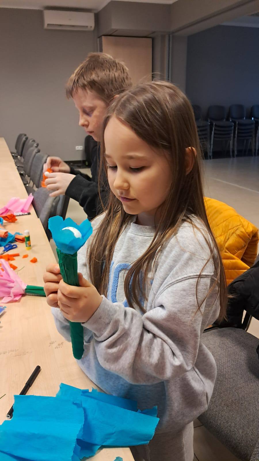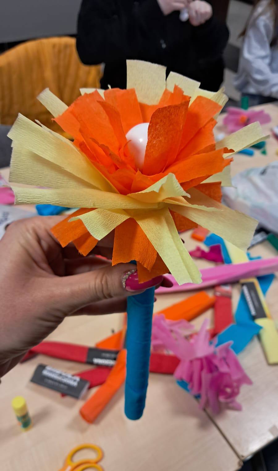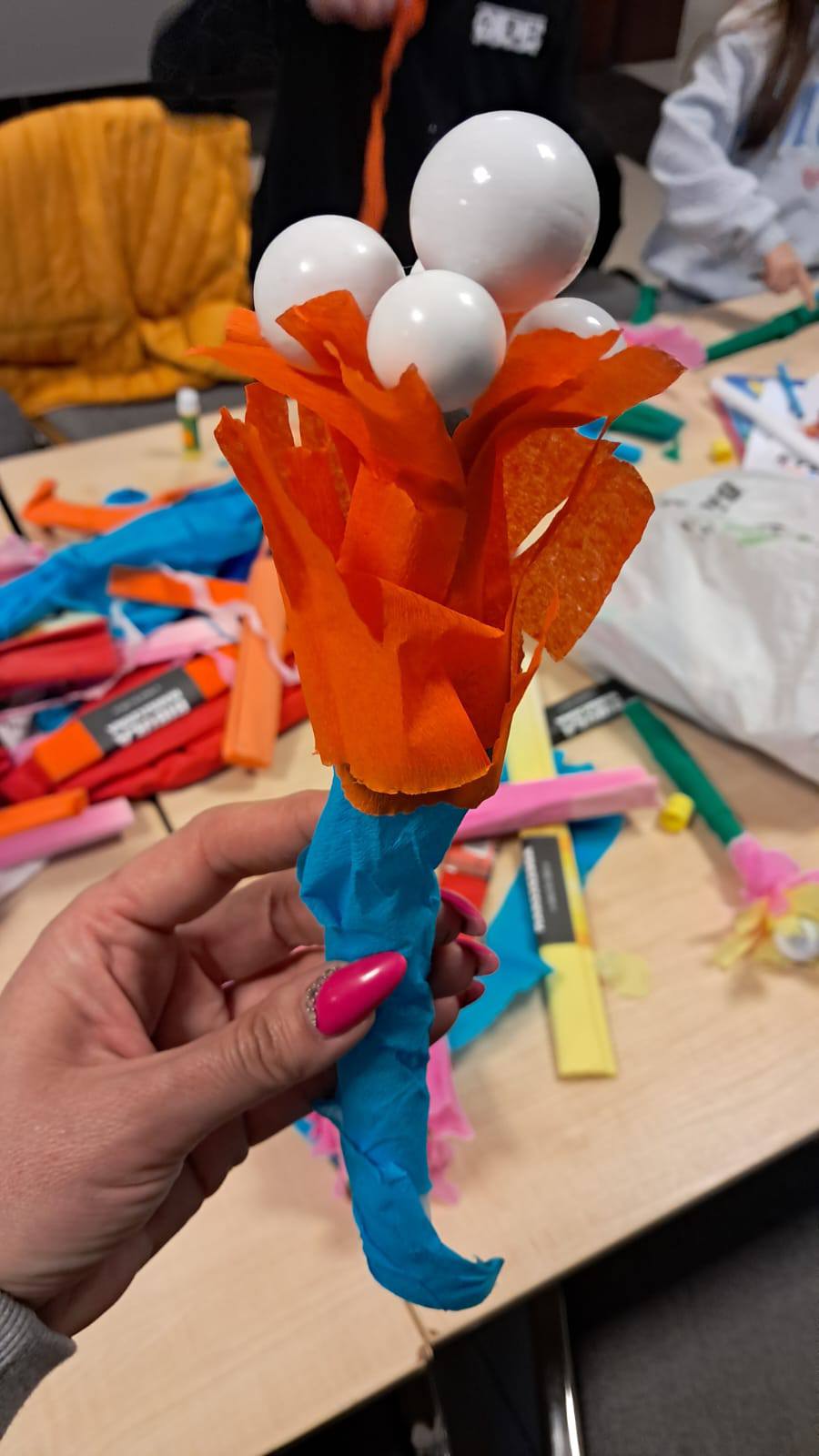 Podczas zajęć plastycznych w Bukowie dzieci dały się ponieść wyobraźni i stworzyły przepiękne, kolorowe kwiaty z bibuły.