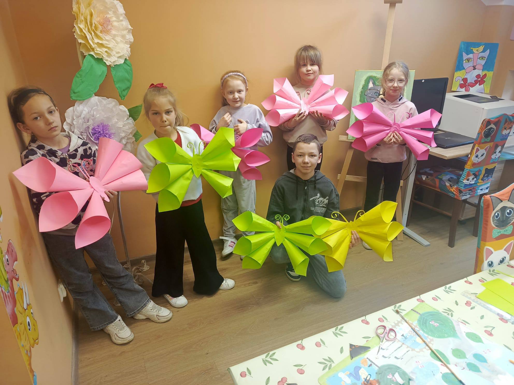 Podczas zajęć plastycznych dzieci stworzyły przepiękne motyle z papieru. Każda praca była wyjątkowa – pełna barw, kreatywności i dziecięcej wyobraźni. To była nie tylko świetna zabawa, ale też okazja do rozwijania zdolności manualnych i artystycznych. Efekty? Zachwycające! 💛