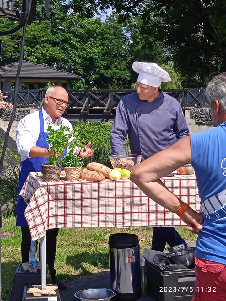 Na terenie malowniczego Stadionu im. Czesława Burka w Nieboczowach miało miejsce nietypowe wydarzenie - Pan Remigiusz Rączka wraz z Starostą Wodzisławskim Panem Leszkiem Bizoniem przygotowali i ugotowali pyszne danie z miejscowych wyrobów.