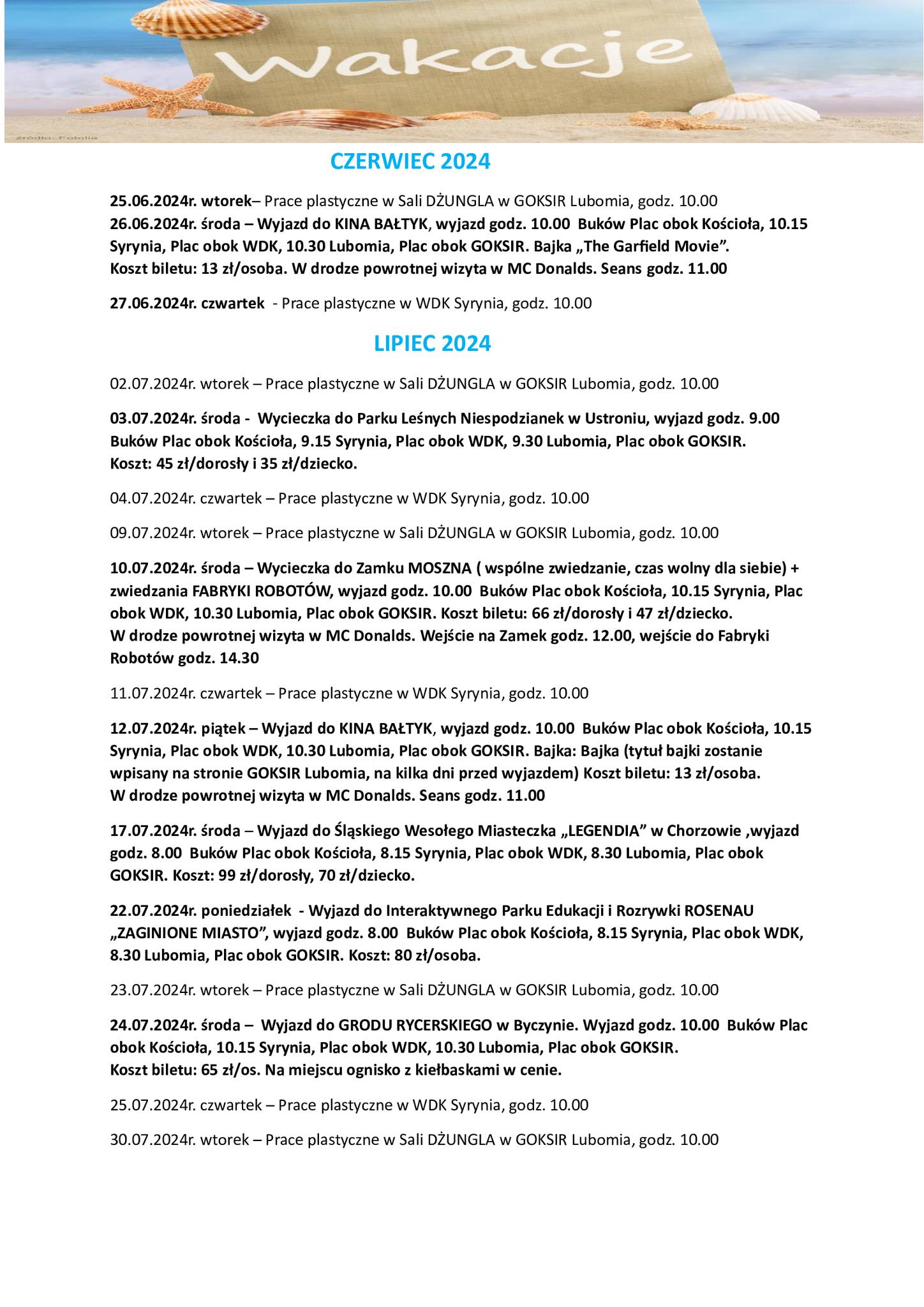 Wyjazdy w wakacje 2024r.- PLAKAT