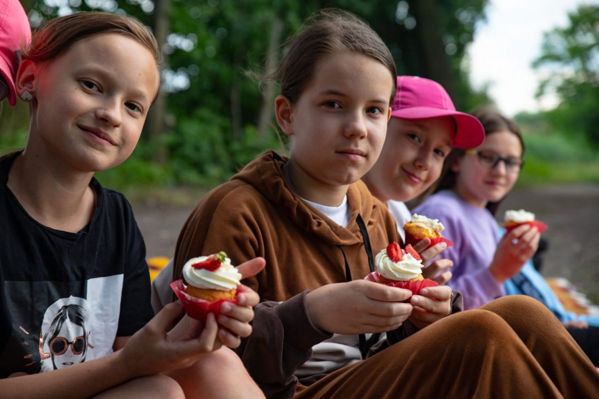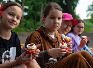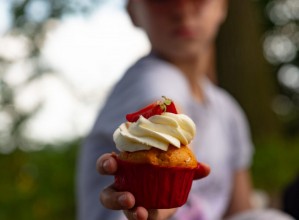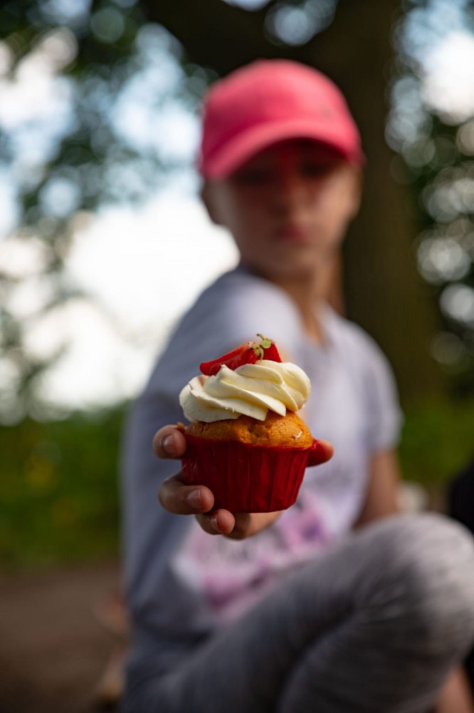 Zdjęcie przedstawia uczestnika warszatów fotograficznych z deserem