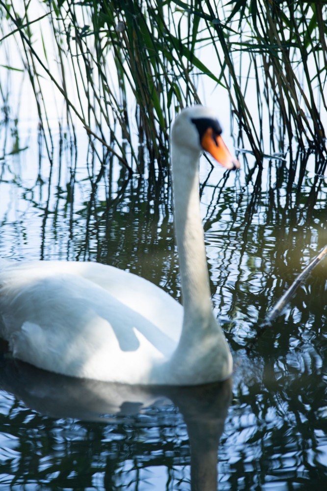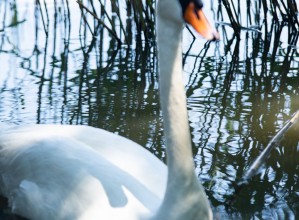 Zdjęcie przedstawia łabędzia w wodzie