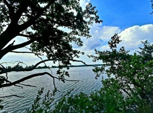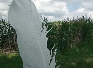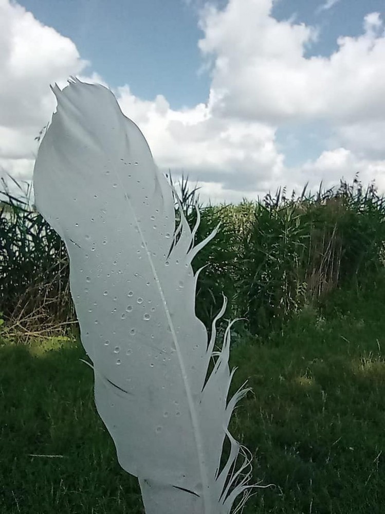 Zdjęcie przedstawia pióro na tle rezerwatu Wielikąt